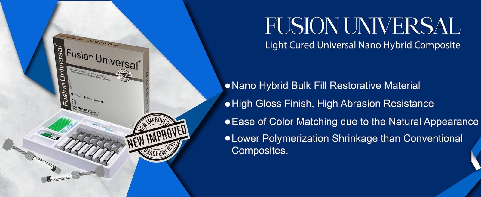 Instructions for use : Clean the tooth to be treated and adjacent teeth with a brush and prophy paste. Select the shade using VITA Shade Guide. Prepare the cavity using conservative cavity technique No residual amalgam or other base material should be left in the cavity. Cover the area close to the pulp with hard setting CAL-LC Light Cure Calcium Hydroxide paste. Apply Actino 37% Phosphoric Acid Etchant Gel for 15-20 sec. Remove Gel with vigorous water spray and rinse conditioned area for at least 10 sec. Blot dry conditioned area with a moist cotton pellet. Apply Fusion Bond 5 dentine bonding agent with a disposable brush to the entire cavity. Ensure thorough wetting of the entire cavity. Allow 20 sec air drying and re apply another coat of dentine bonding agent. Remove excess solvent by gently drying with dry air for at least 5sec to ensure uniform glossy surface. Cure adhesive for 20-30 sec using standard curing light. Remove Fusion syringe cap and dispense material onto a mixing pad. Place the material into the cavity using a clean unabraded instrument (teflon coated). After dispensing, screw plunger should be rotated anti clock wise by half to full turn to release residual pressure inside the syringe. Contour the  aterial in the cavity. Light cure for 40 sec using standard curing light. When necessary build in increments of 2mm maximum using a layering technique. Shape and polish using standard technique and at last stage apply Fusion Nano Coat protective varnish. The dispensed material shall not be placed back in container and the dose once applied and used shall not be reused.