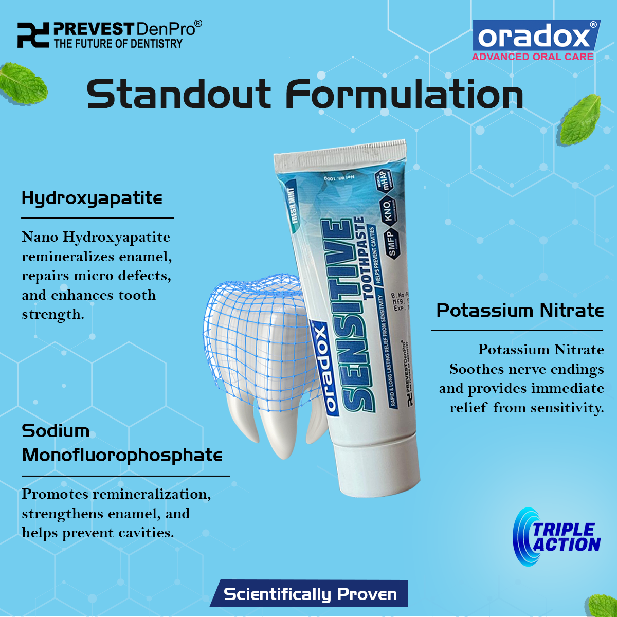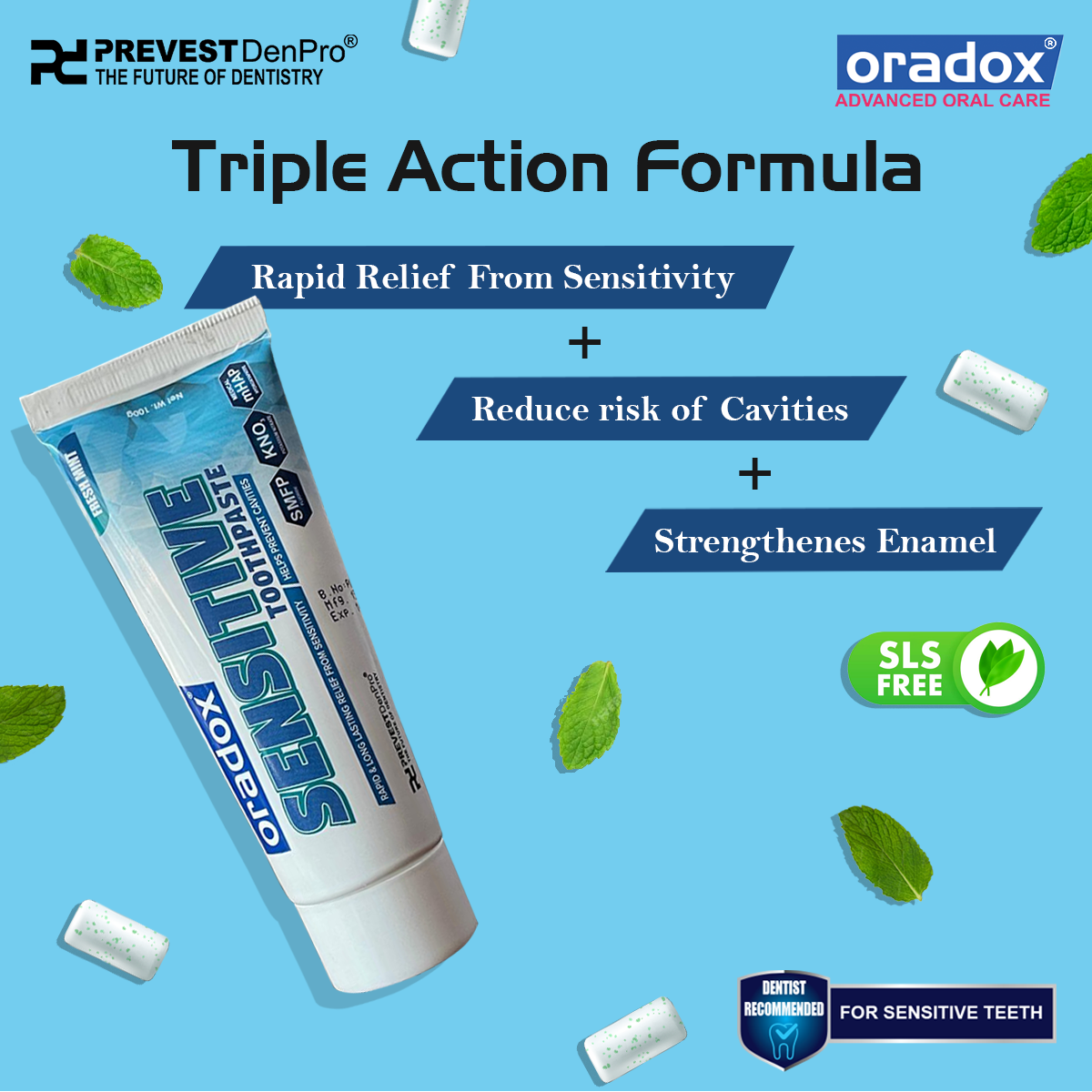 Place the denture in a glass of 150ml of warm water (33°C to 47°C) ensuring that it is fully immersed and immediately drop one oradox denture cleansing tablet in the water. Soak for a minimum of 15 minutes to ensure reduction of the biofilm. Acrylic appliances can be soaked overnight. Brush can be used if necessary. Remove the denture from the solution and rinse well under water before oral application.