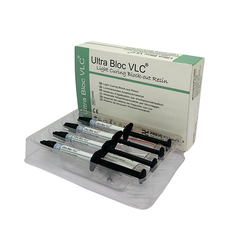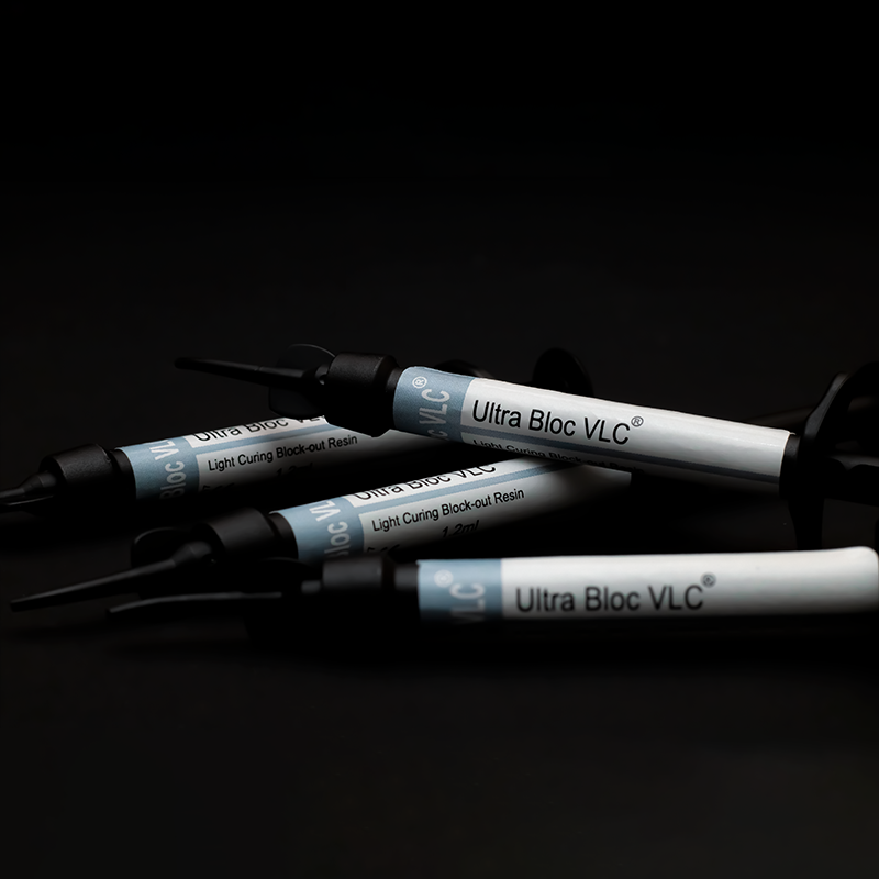 Apply 0.5 mm thickness of material onto desired labial surfaces. Stay about 1.5 mm from gingival margin. Do not extend onto incisal edges and occlusal surfaces. Light cure for 20-40 sec. Vacuum form the tray. Trim the excess material from edges. Check the tray for fit on the model.
