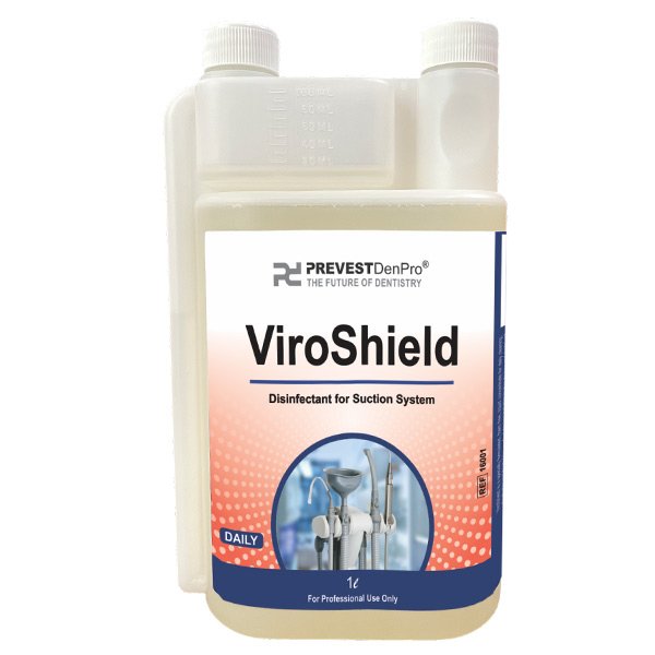 - 1. VIROSHIELD is a powerful concentrated solution for the thorough cleaning and disinfection of common dental suction systems (vacuum lines, amalgam filters, and spittoons).