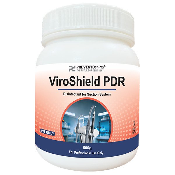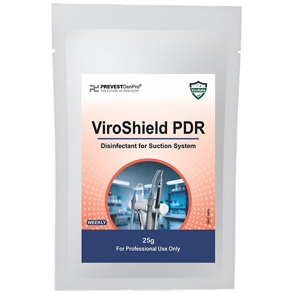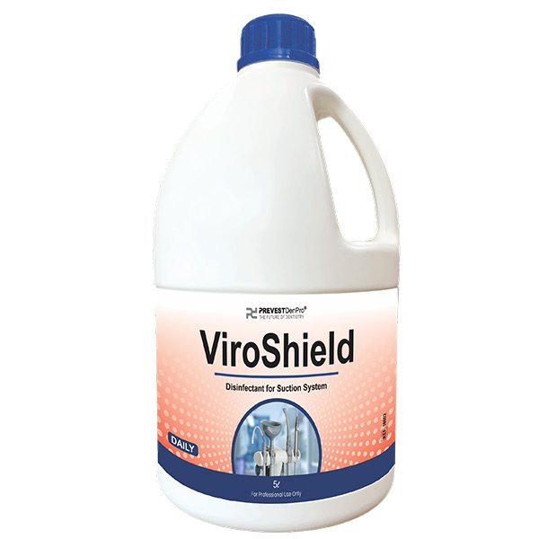 VIROSHIELD is a non-foaming, 2% concentrate that quickly cleans and provides broad-spectrum disinfection for dental suction systems.